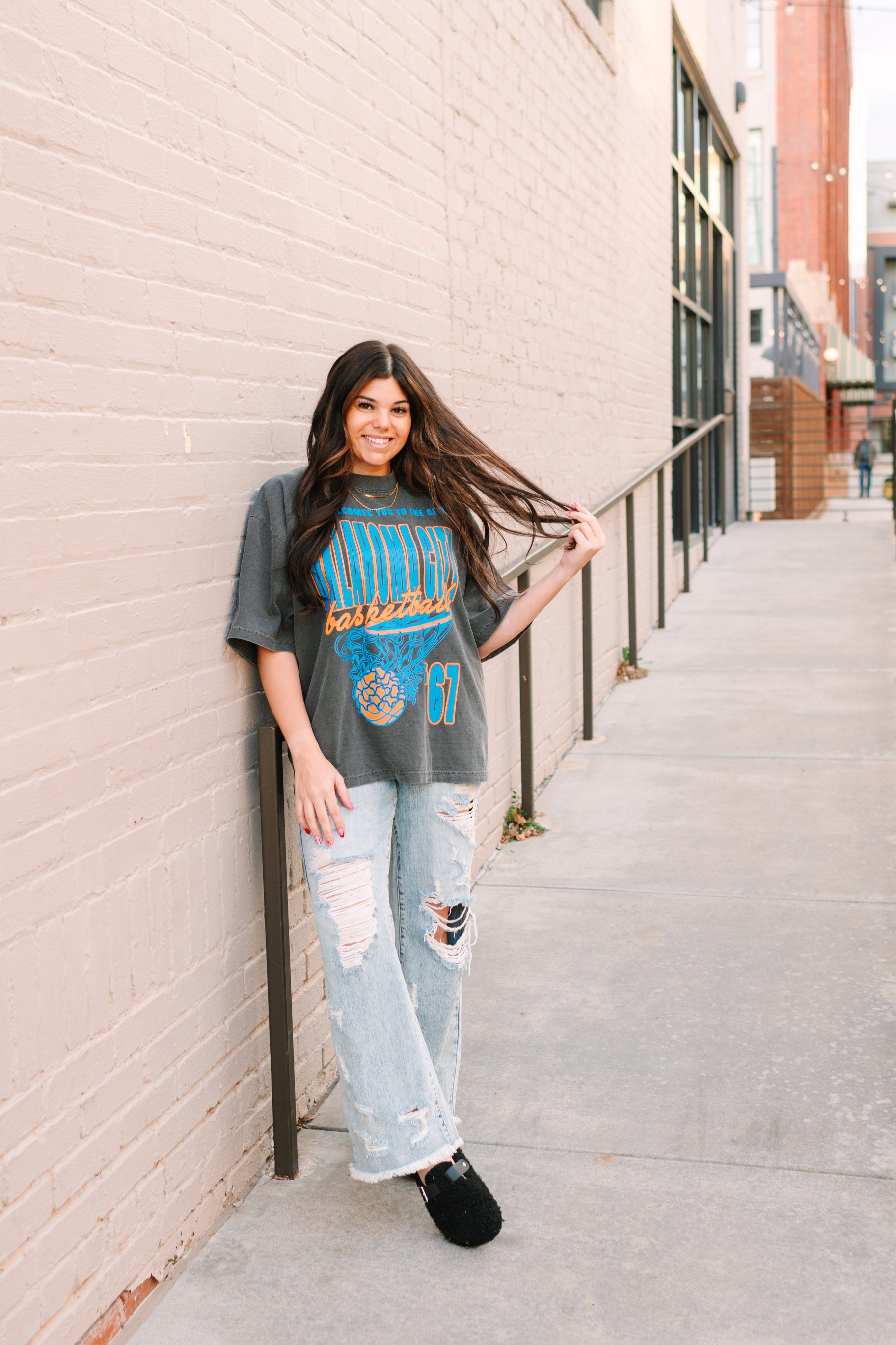 Embrace your love for Thunder basketball with the Oversized OKC Graphic tee! With its cozy boxy fit and stylish charcoal grey color, this shirt not only showcases your team spirit but also offers exceptional comfort for all-day wear. Elevate your game day look and stand out with pride! Running a size big- size down if you want less of an oversized fit. Brooke is in her normal size medium and still had plenty of room. 100% cotton